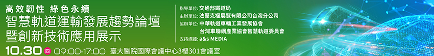 高效營運、安全韌性、綠色永續已是全球軌道運輸部門及相關產業致力發展的三大方向,而AI、雲端、5G等智慧化科技的運用更成為其核心關鍵。由交通部鐵道局指導、法蘭克福展覽台灣分公司主辦,中華軌道車輛工業發展協會、台灣車聯網產業協會智慧軌道委員會...