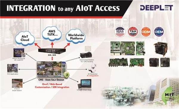 多元化與AI設備端整合鏈接遠端影像儲存及警報聯防應用,整合各式AI智慧偵測分析在IPCAM/NVR產品中,例如: 人/車偵測, 電子圍籬越線偵測, 移動偵測, 竄改偵測, 入侵偵測…等不同行為模式判定,客製錄影或警報觸發動作(Push Notifications)發送至CMS/AI雲端服務/LINE/手機APP等後端管理平台。產品主應用於零售、運輸和物流等垂直市場。