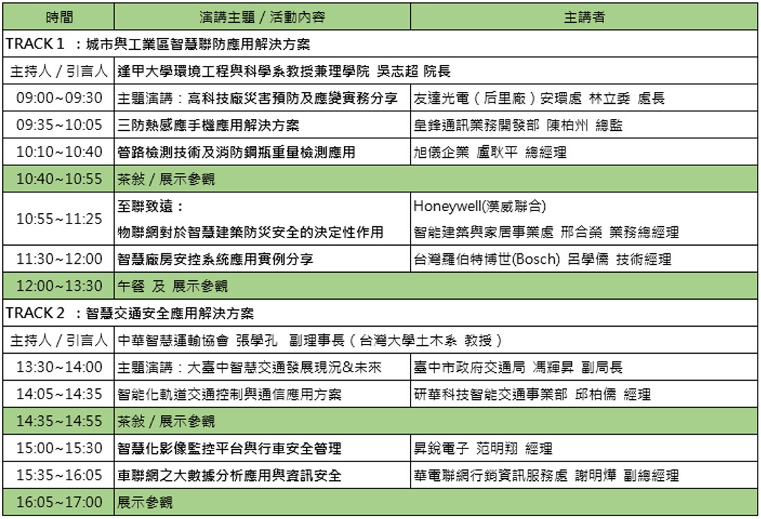 智慧防災,物聯安防,環安衛暨水利,警備等最新iOT設備與系統展演。