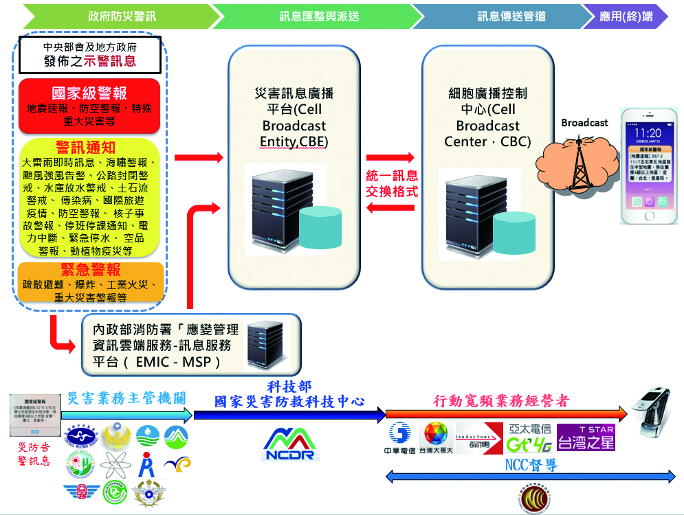 災防告警系統架構圖(來源:國家災害防救科技中心)