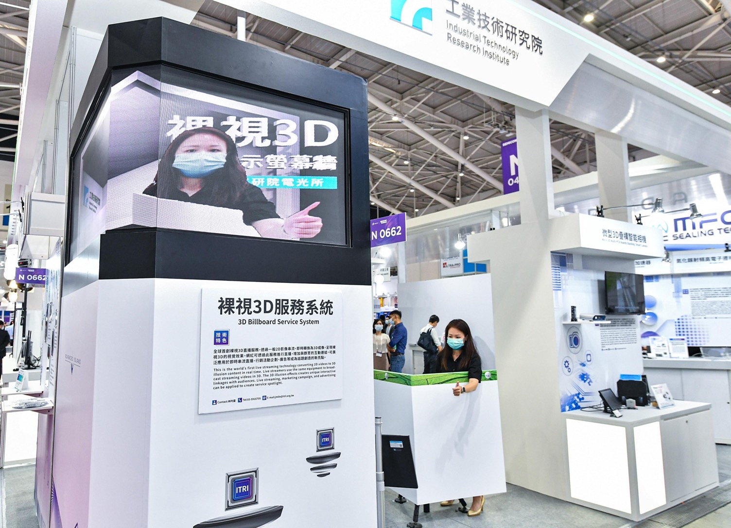 此外,主題館也展出全球首創可以3D Live直播互動的「即時裸視3D服務系統」,此系統可直接用AI去背、讓影像即時變成3D,再與虛擬背景即時融合成像,整體運算約1秒完成;無須任何穿戴式裝置即可看見3D影像,且在各種型態的顯示器皆可呈現,適合做為智慧移動、展演場合(如演唱會)、廣告看板和遠距投影會議等應用。