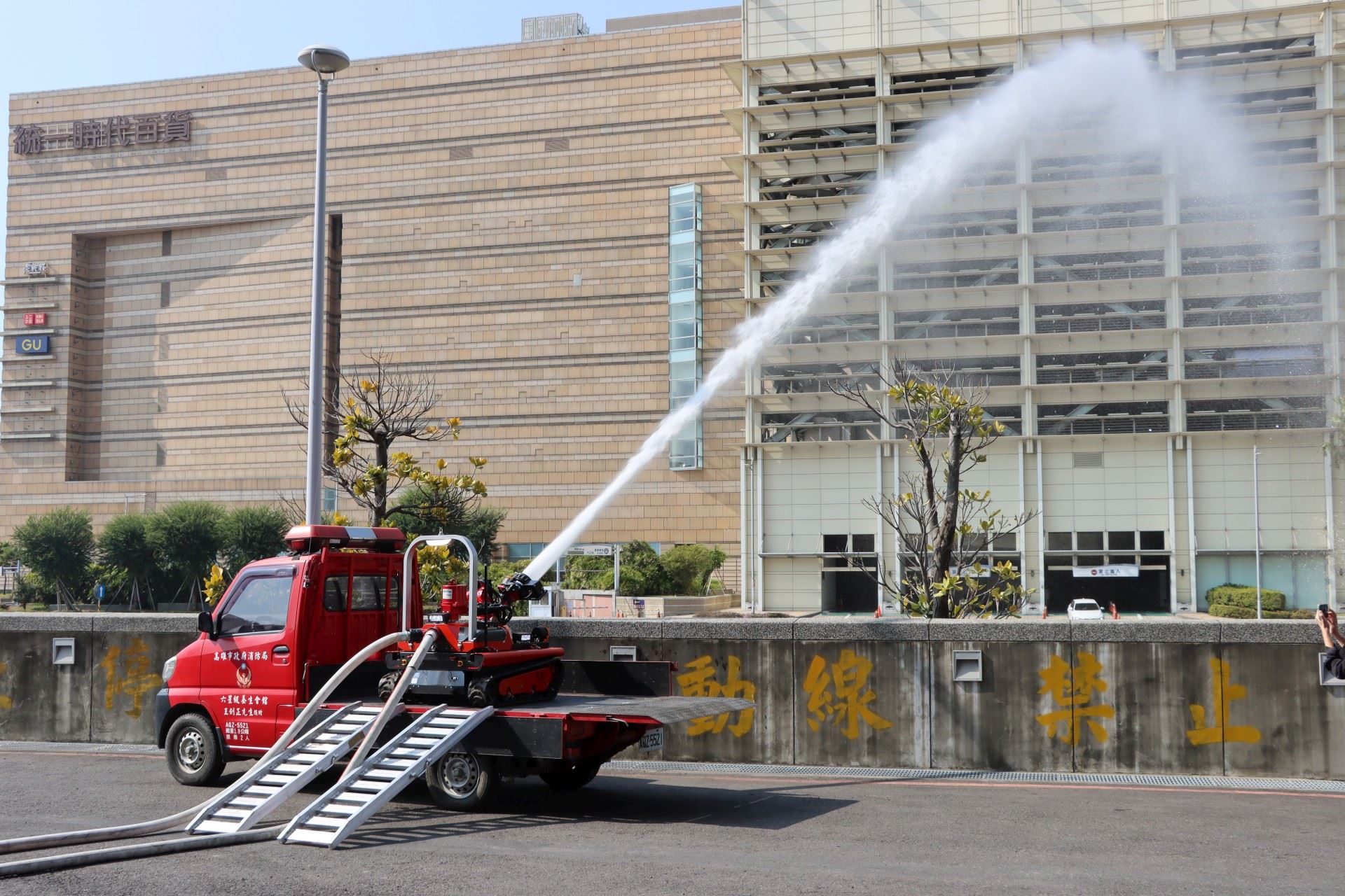 為運用智慧科技強化救災應變能力,高雄市政府消防局建置2組全國首創具IoT智慧連網的消防機器人。副市長林欽榮3月10日至成功消防分隊視察消防機器人救災運用操演,由消防人員實地展現消防機器人的多項功能,包括大流量射水、強大拖曳能力及具高科技偵測及傳輸裝備。