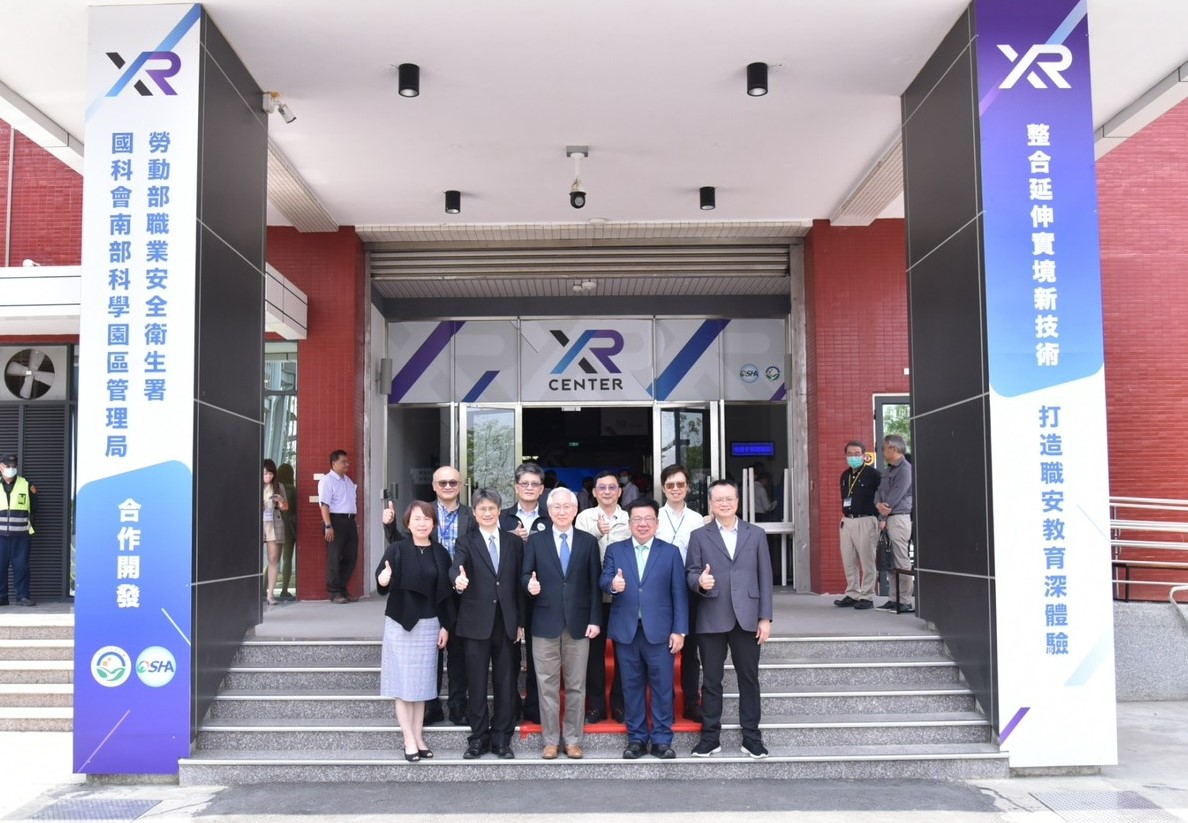 在國科會主委吳政忠與勞動部政務次長李俊俋共同見證下,南科管理局局長蘇振綱與職安署署長鄒子廉於4月14日一起簽署「職業安全衛生多體感延伸實境XR場域」合作宣言,兩部會將運用科技量能與職業安全衛生結合,有效整合跨部會資源,提供全新的類實境教育訓練模式,打造國內首屈一指的職業安全衛生多體感延伸實境XR場域。