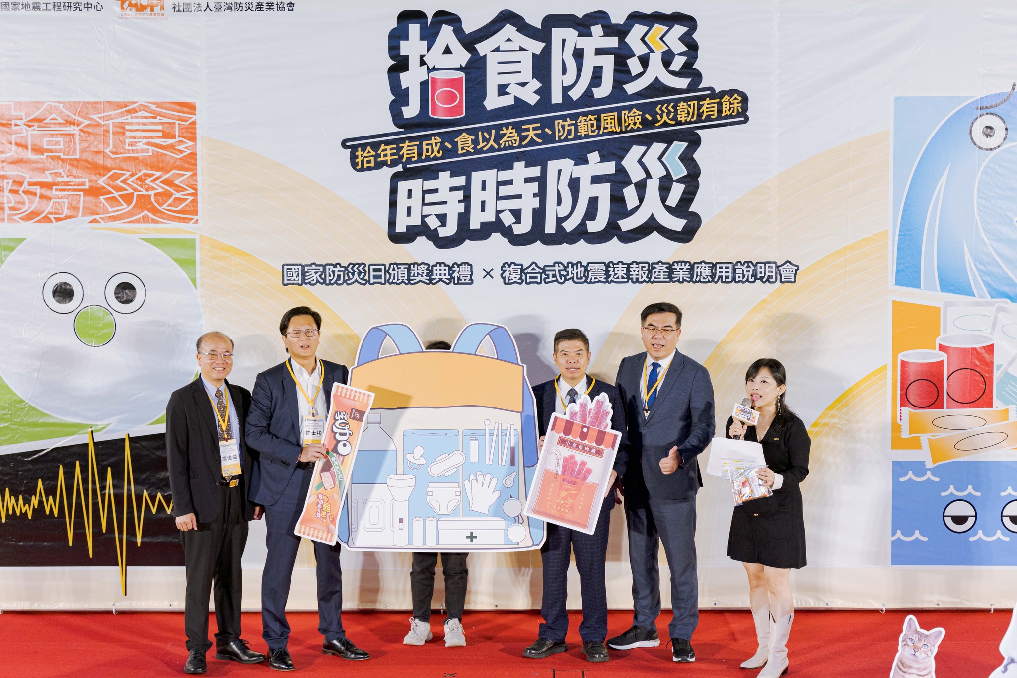 防署日前(10月12日)偕同社團法人臺灣防災產業協會及財團法人國家地震工程研究中心,三方協力舉辦「『拾食防災 時時防災』國家防災頒獎典禮暨複合式地震速報說明會」,除透過本活動表揚各賣場及網路平臺業者配合政府設置防災專區推廣防災準備外,同時分享國內「複合型地震速報平台」當前應用與發展;另外,防災產業協會為配合政府防災政策願景也同步推廣該協會的「防災商品認證標章」及表揚「防災科技應用技術優質獎」,以強化民眾自主防救災的意識。