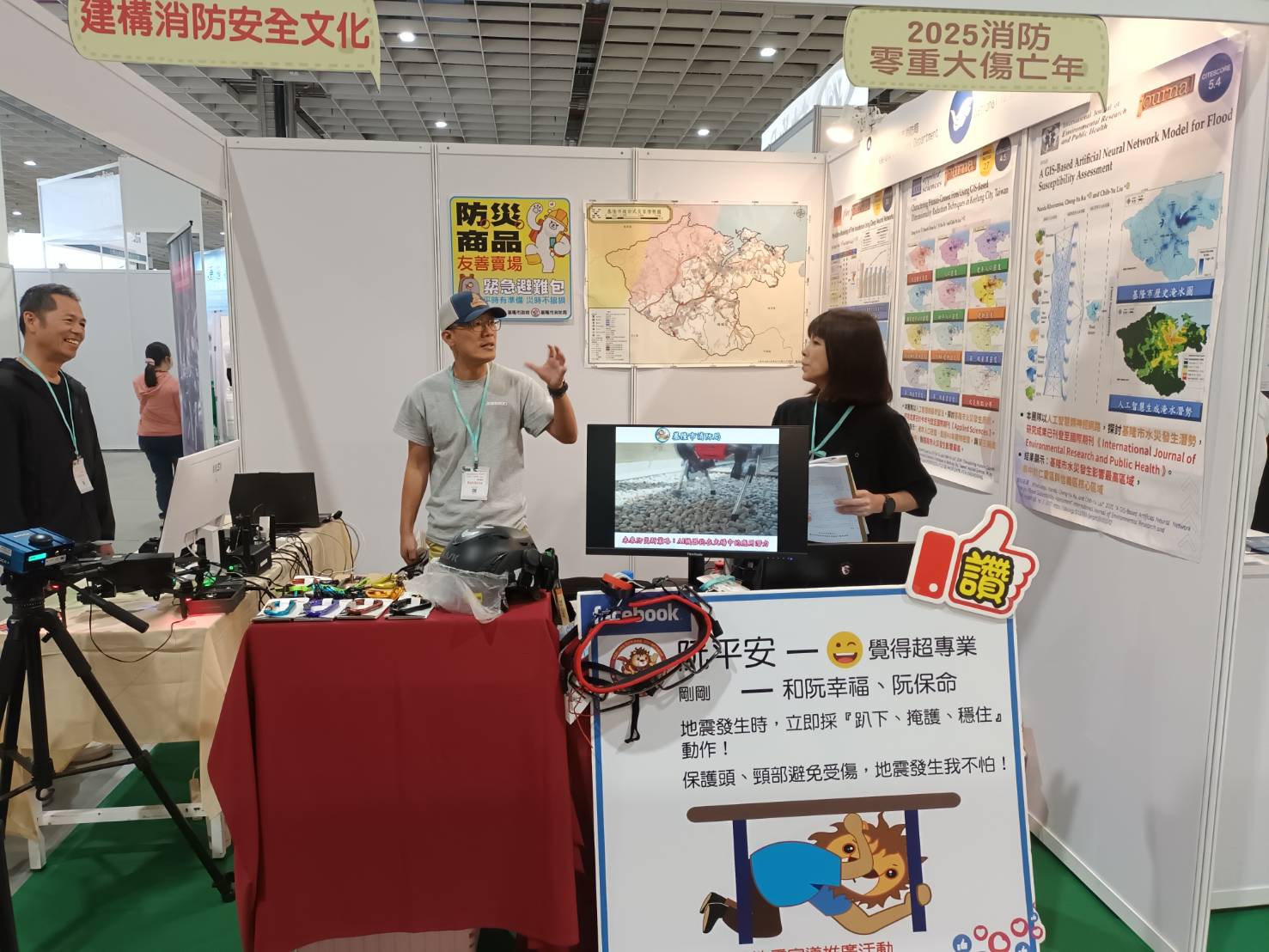 同時,局方也攜手強韌臺灣防災計畫與國立臺灣海洋大學團隊,共同展出「智慧複合災害潛勢預警圖資」系統,整合氣象、地形、人口密度與建物分布等多維資料,針對火災、淹水、土石流與強風等常見複合型災害風險進行模擬與判讀,協助防災單位進行事前風險研判與資源布署。