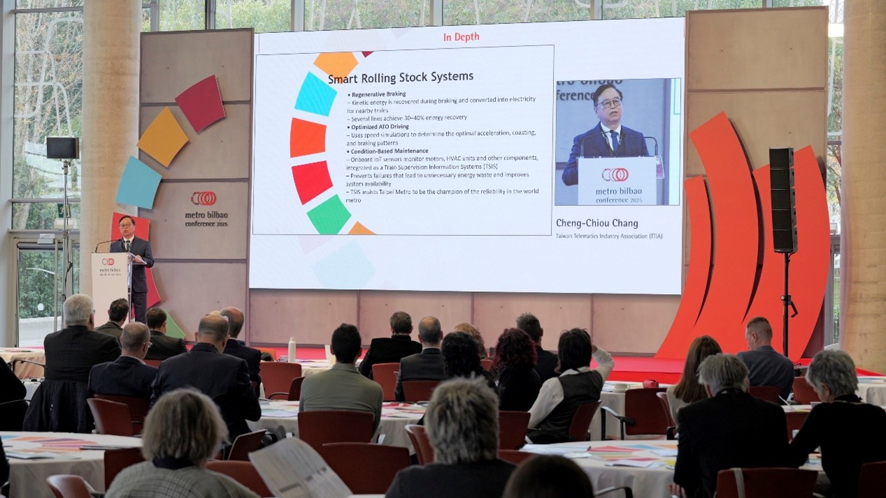 張辰秋執行長(左立者)2025年12月3日於加西班牙Metro Conference發表演說。