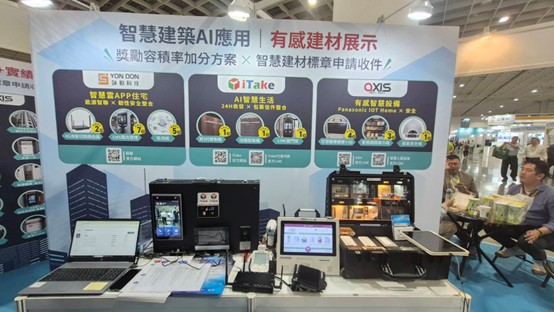 本次展示聚焦可納入智慧建築標章評分的創新建材應用。Axis展出智慧醫療健康小站(4分)、松下語音及APP智慧開關(3分)、智能安全帽與防墜落系統(2分);iTake格新智能展示第3代智取櫃、信箱智取櫃及LINE雲門禁(各1分);詠動則帶來EMS能源管理系統(10分)、4G海量切換路由器(5分)及區塊鏈應用(5分)。多項產品皆可協助建案取得智慧建材評分,進一步提升建案開發價值與市場競爭力。